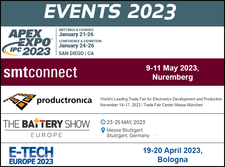 活動(dòng)日歷可能會(huì)有一些變化。 APEX: 美國(guó)圣地亞哥,1月24日至26日 全球工業(yè)展: 法國(guó)里昂,3月7日至10日 Productronica中國(guó) : 4月13日至15日,中國(guó)上海 E-Tech歐洲 : 意大利博洛尼亞,4月19日-20日 SMT : 德國(guó)紐...