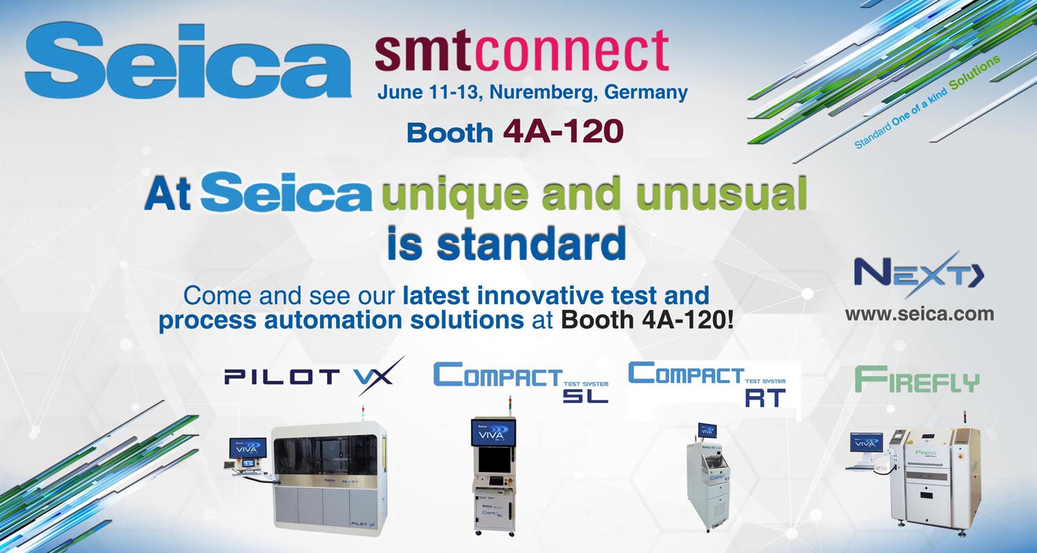 Seica 將參加 6 月 11-13 日在德國紐倫堡舉行的 SMT 2024 展會,展位號為 4A-120,參觀者將看到最新、最前沿的全自動測試解決方案。如今,自動化在工廠和大多數(shù)生產(chǎn)線中無處不在,我們展出的解決方案均可用于完全自動化的生產(chǎn)線中。