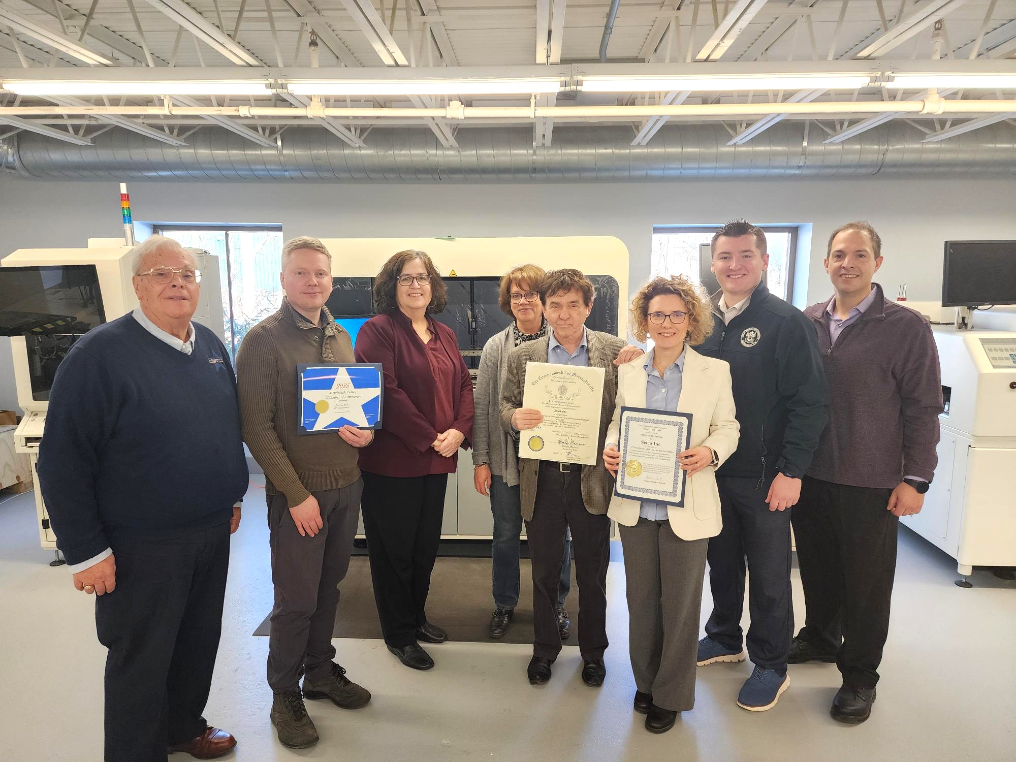 這一重要里程碑式的慶典暨SEICA集團銷售會議在美國馬薩諸塞州哈弗希爾Seica美國子公司舉辦,公司創(chuàng)始人、總經(jīng)理芭芭拉·杜瓦爾(Barbara Duvall)和集團總裁安東尼奧·格拉西諾(Antonio Grassino)在會上肯定了Seica北美、法國和中國子公司為整個集團的全球發(fā)展所做出的重要貢獻。代表參會的是各子公司總經(jīng)理:Seica法國Stéphane Dupoux、Seica美國David Sigillo和Seica中國陸建良。Seica美國子公司還榮幸地從馬薩諸塞州聯(lián)邦代表、梅里馬克河谷商會代表以及哈弗希爾市市長手中接過紀念證書,祝賀公司在該地區(qū)成功成立25 年。這些子公司在Seica的全球銷售和支持網(wǎng)絡中發(fā)揮著重要作用,助力Seica集團成為電子行業(yè)的全球領導者,專門從事研發(fā)和生產(chǎn)用于測試電子電路、模塊以及選擇性激光焊接的創(chuàng)新型高科技系統(tǒng)(固定式與飛行探針)。